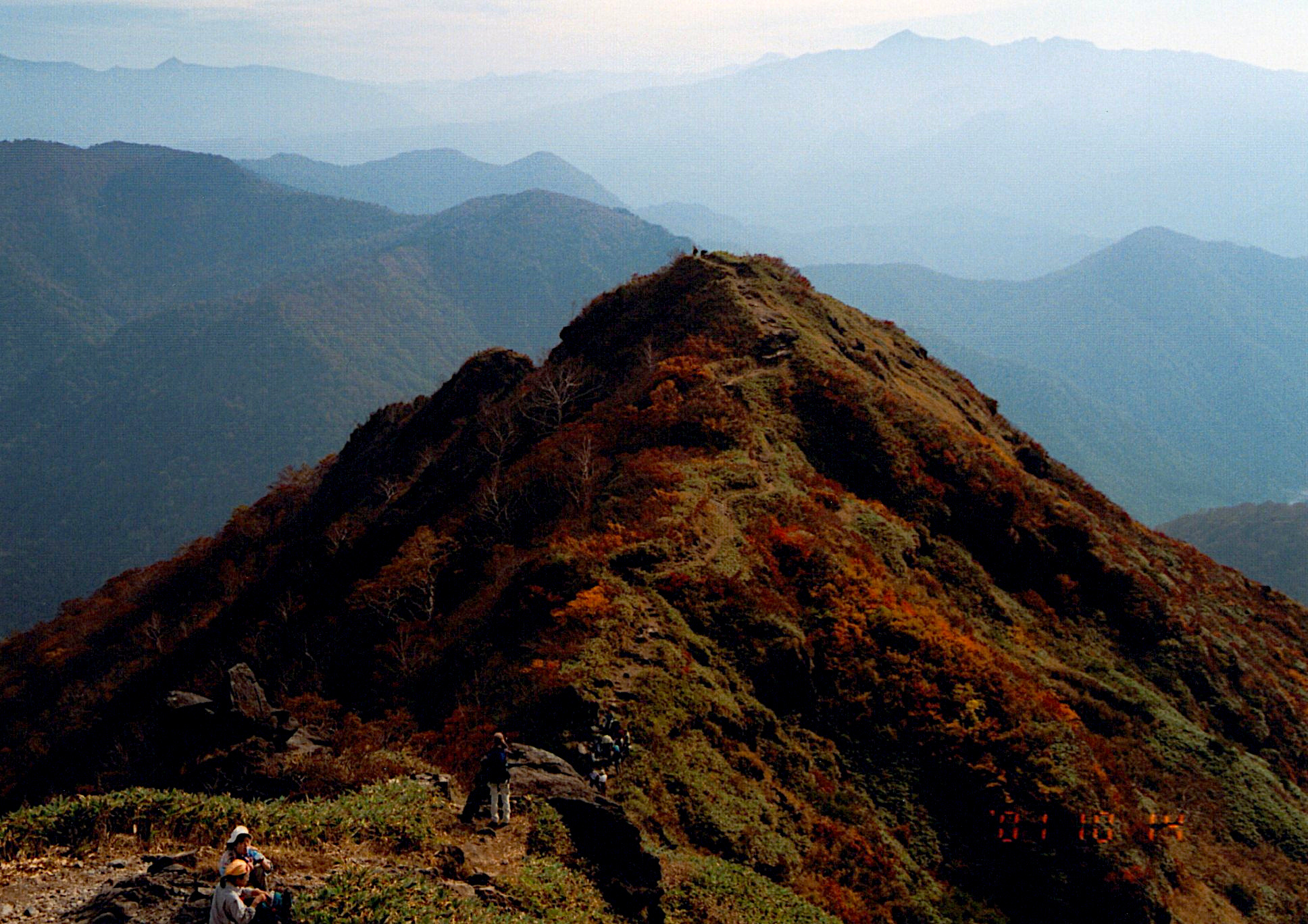 朝日岳から少し降りて来た。