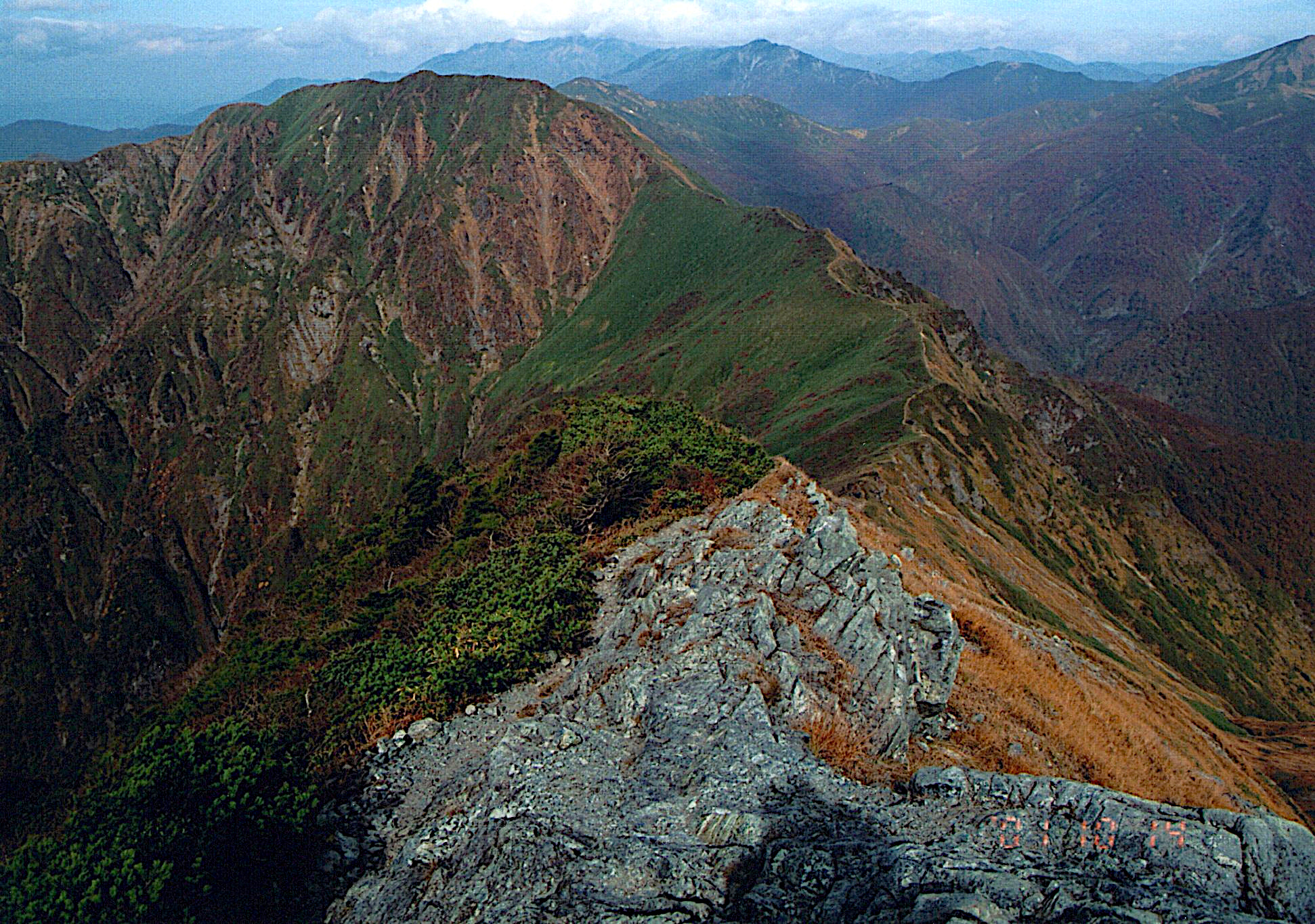 歩いて来た稜線。