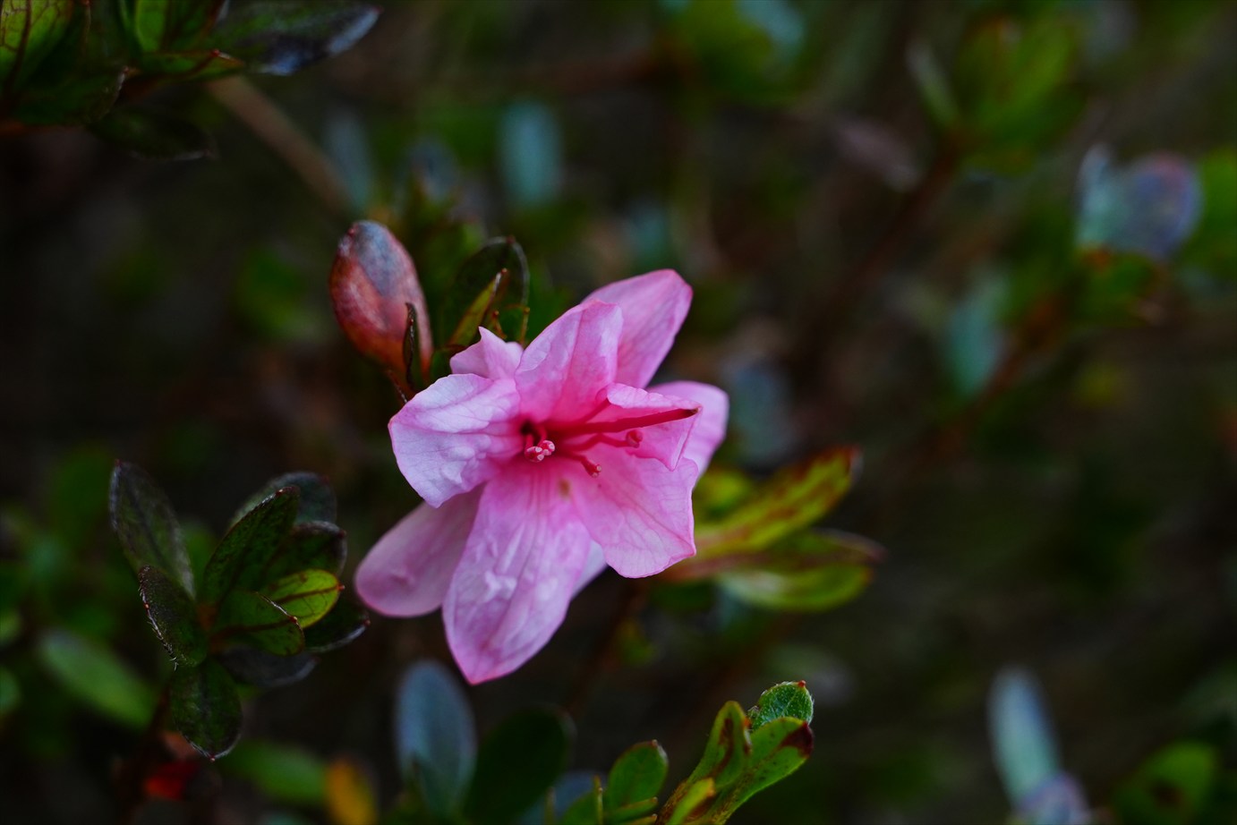 ポツンと一輪だけピンクの花。