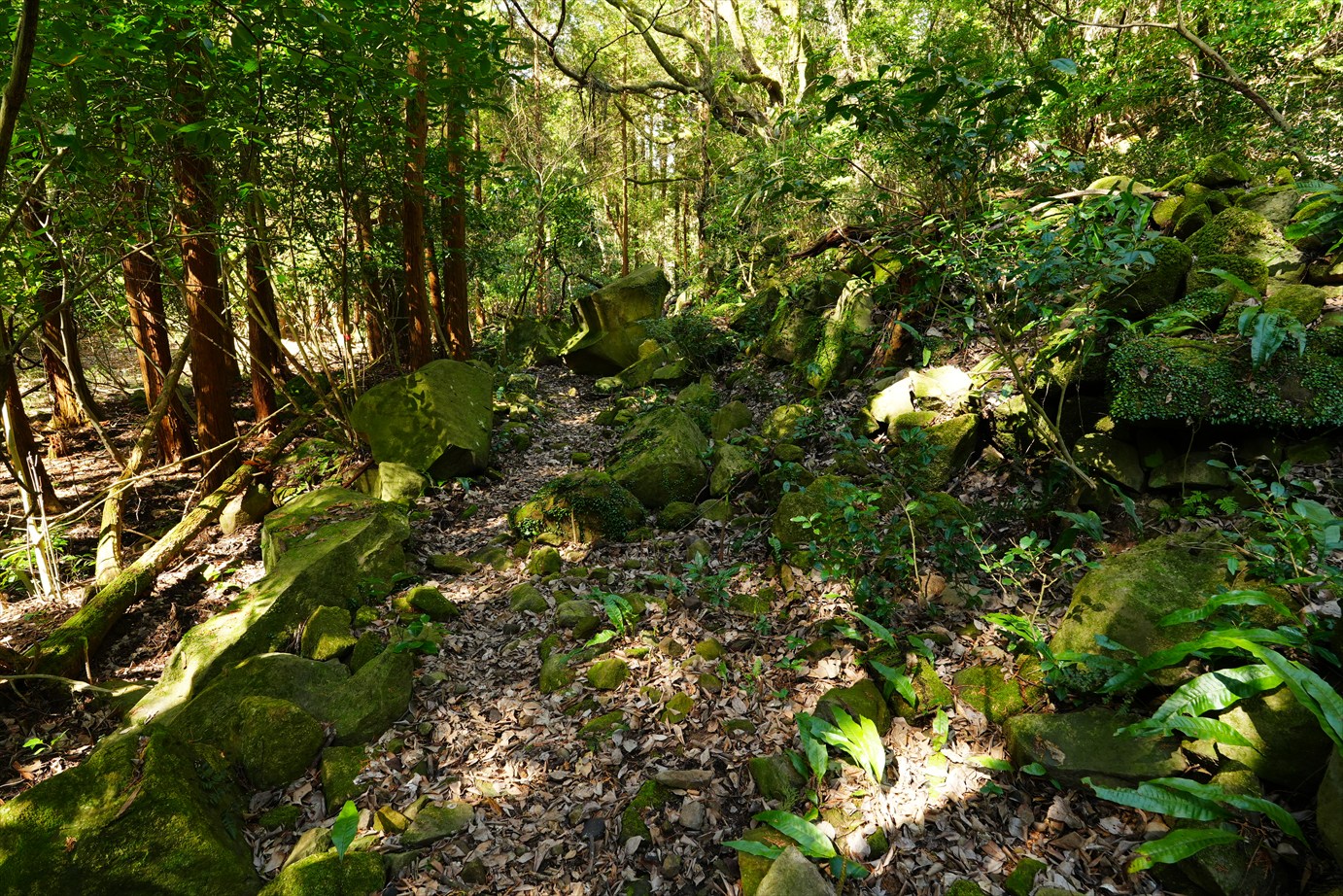 その先は苔生した岩が