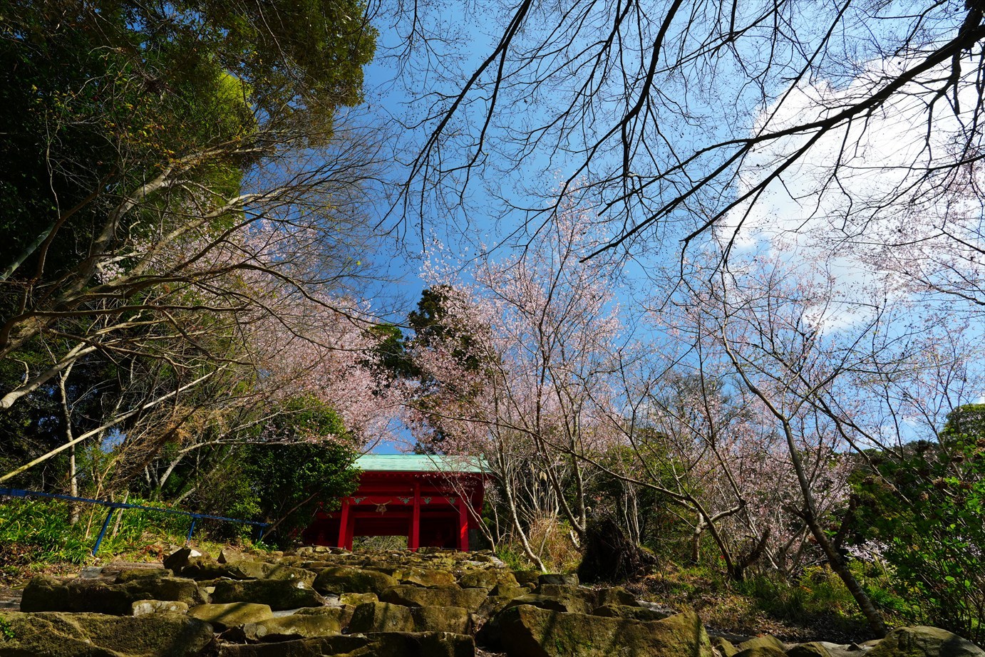 石段の上は桜が咲いてるけど、