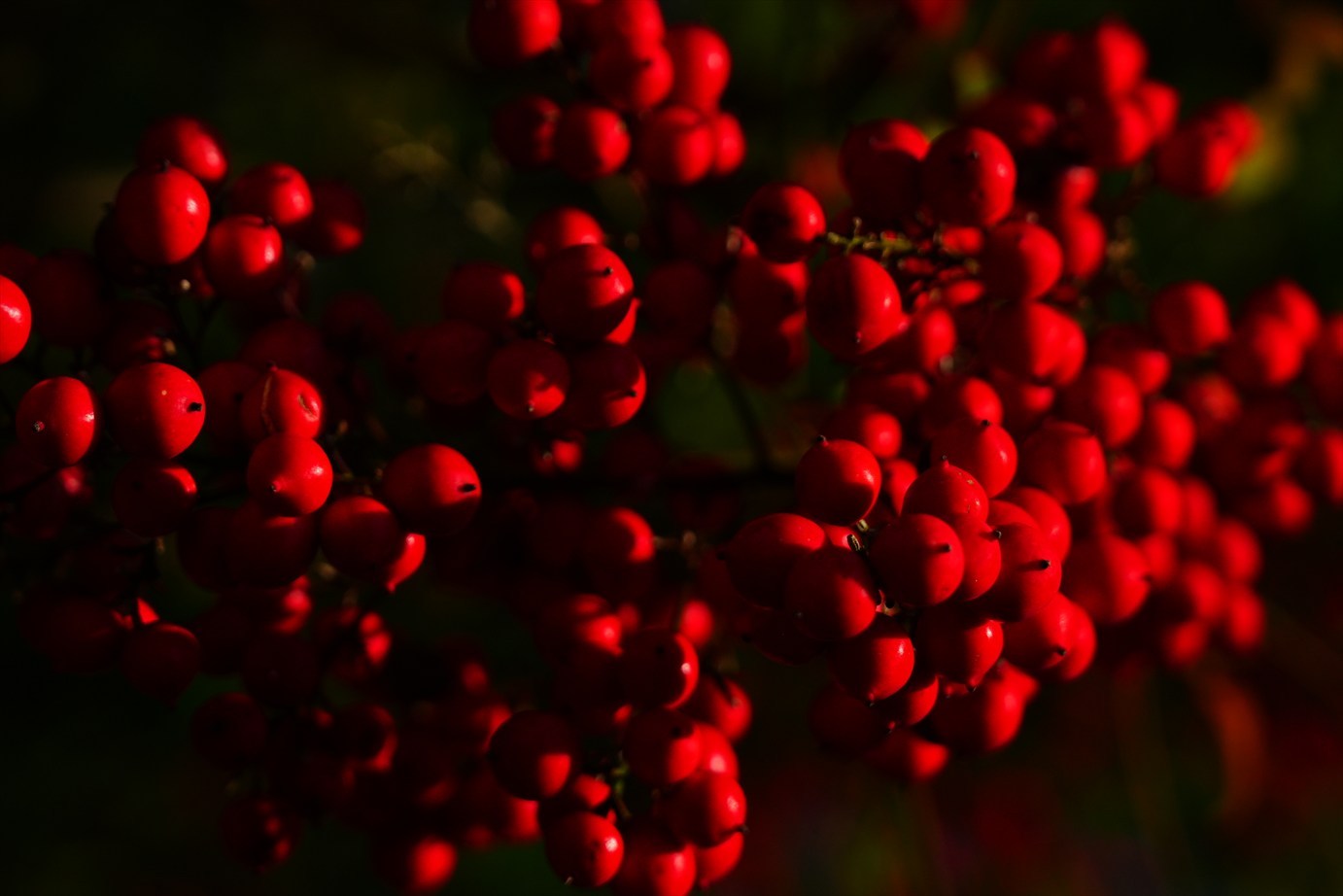 南天も西日を浴びると、