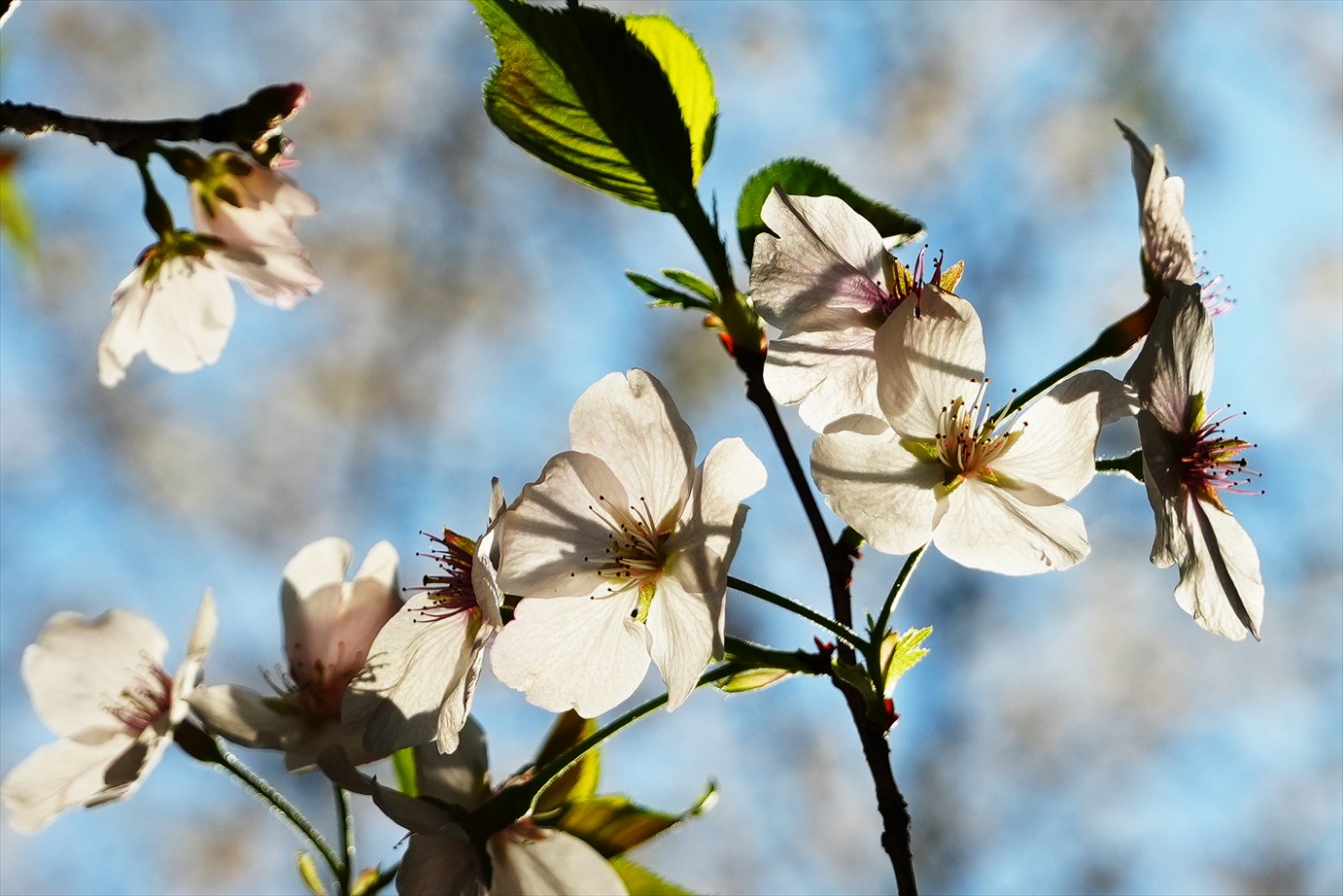 車道沿いの桜を逆光気味で。
