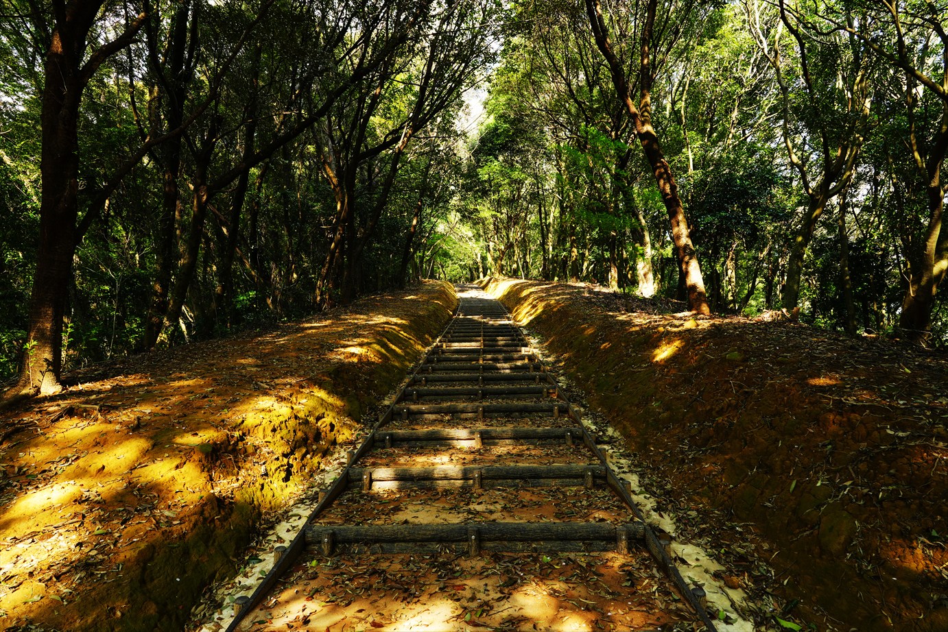 山頂への階段の上にも