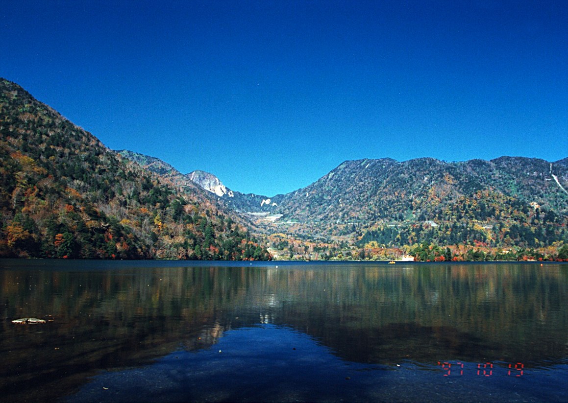 正面の山が男体山。