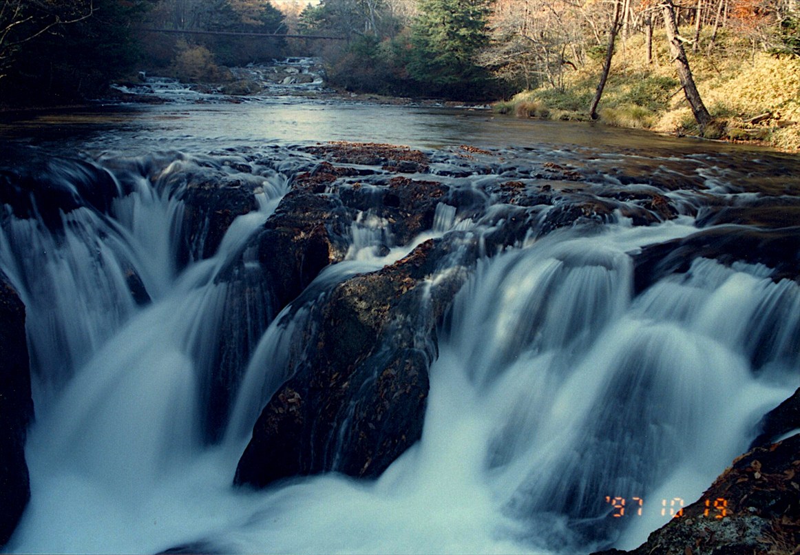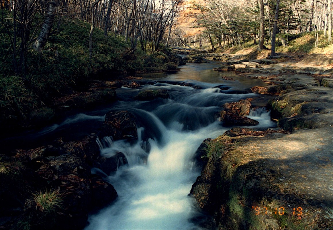 湯川に沿って