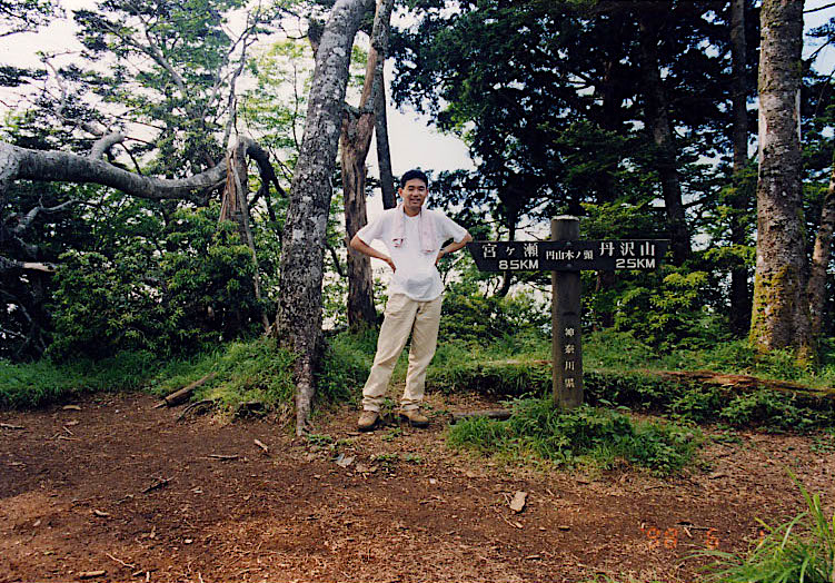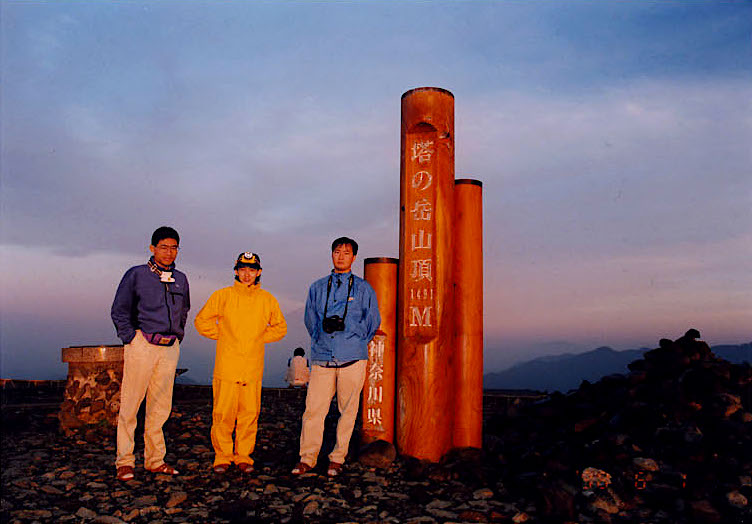 山頂で記念写真を撮る。