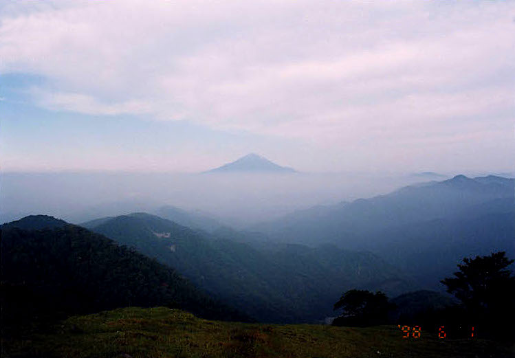 山頂からは霞んで富士山は見えなかった。