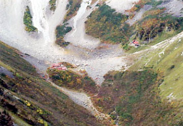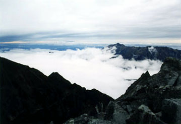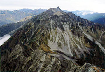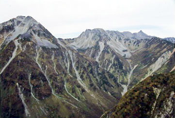 穂高連峰の斜面がスゲ〜急なのが分かる。
