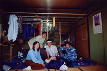 朝の 4 時から寒くて小屋の暖炉部屋に、