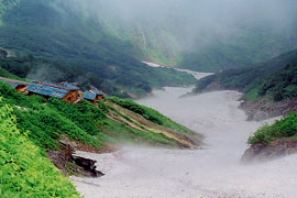 鑓温泉付近にはまだ沢山雪渓が残っている。