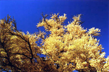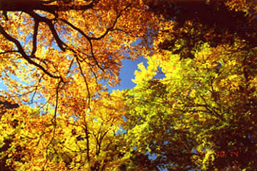 正面に背の高い黄葉が見えてくると