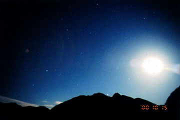 テントから顔を出すと月が綺麗。