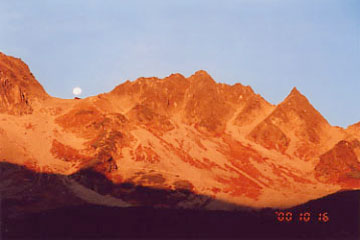 涸沢ではお馴染みのモルゲンロート。