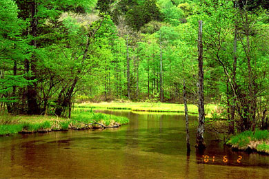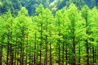 梓川傍の唐松林