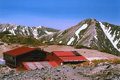 北側には、蝶ケ岳ヒュッテの先に
