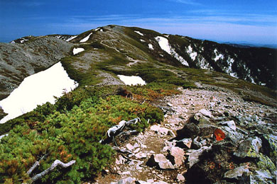 穏やかな蝶ケ岳の二重稜線