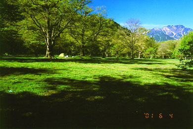 緑に包まれた徳沢に一度はテントを