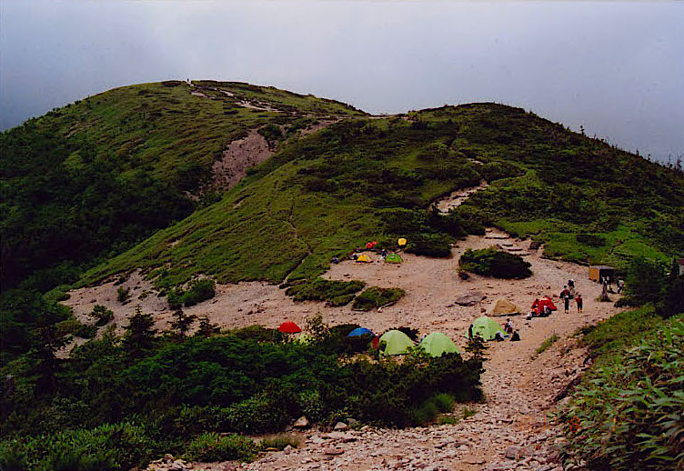 降った所に薬師峠のテント場があった。