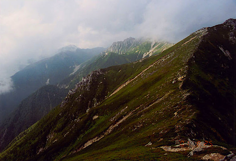翌朝小屋の外に出てみると、しばらくは稜線が