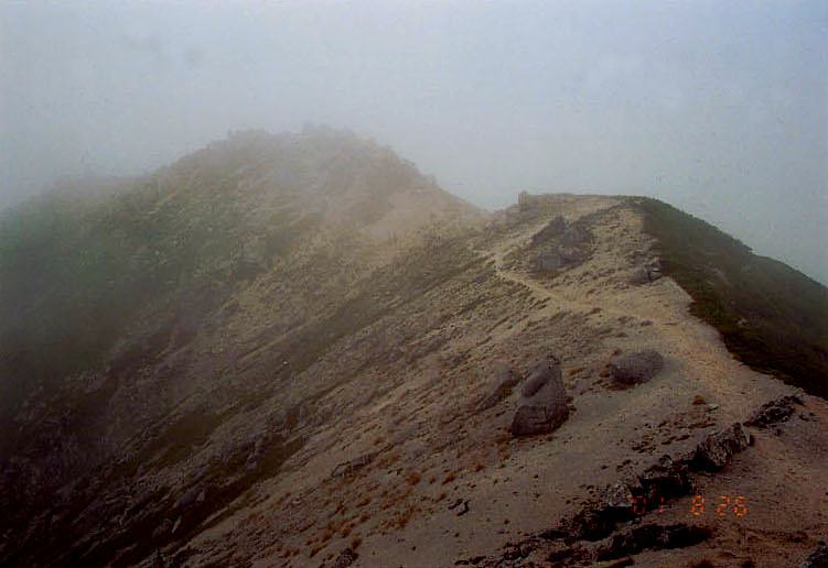 南駒ヶ岳付近ではすっかりガスに囲まれ、