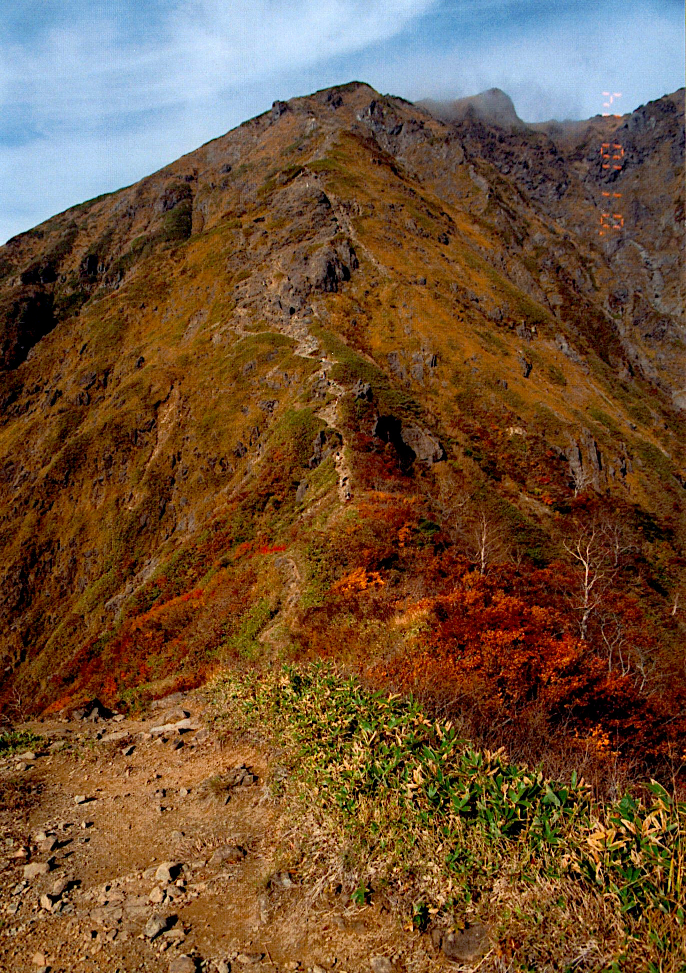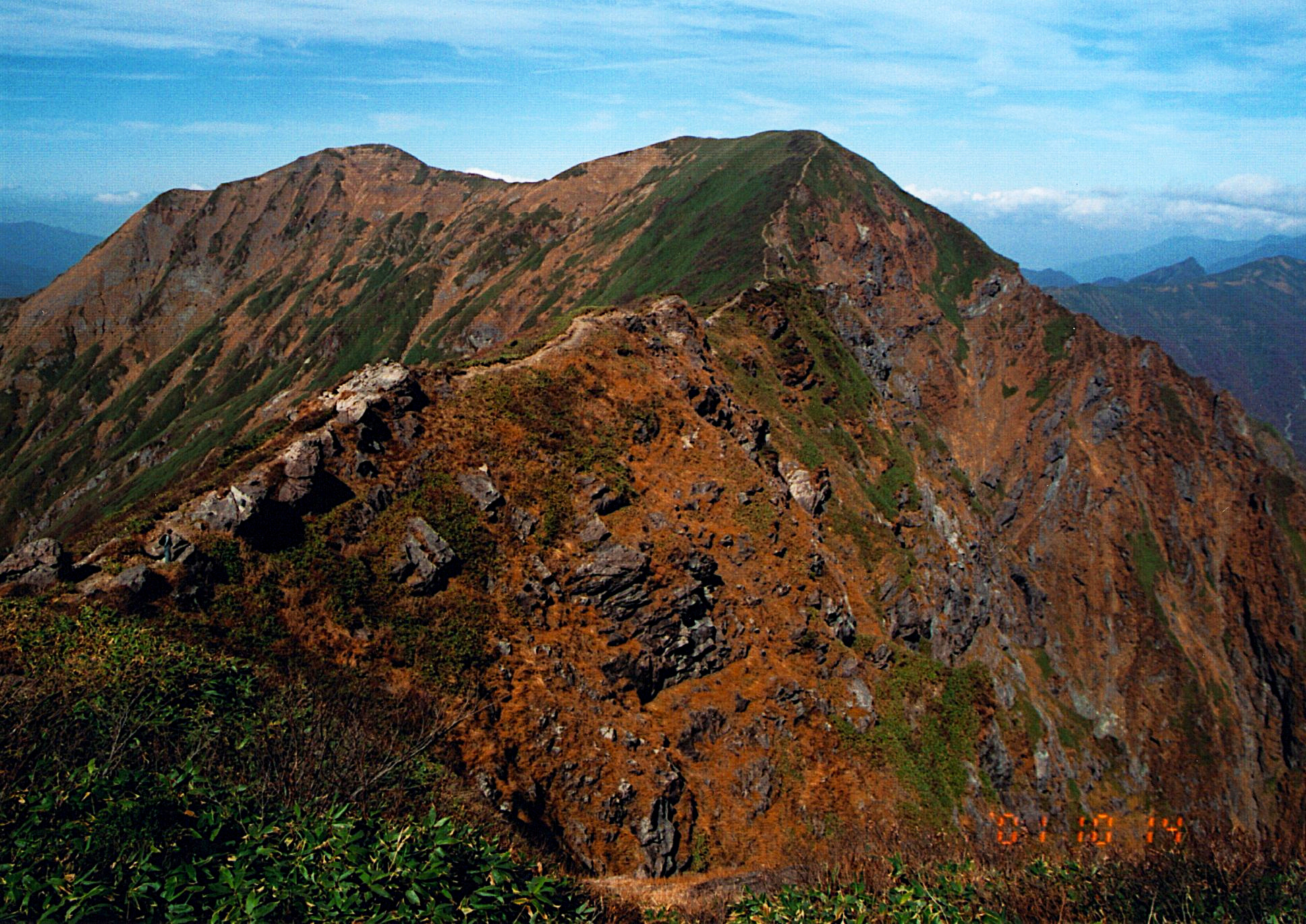 朝日岳から少し降りて来た。