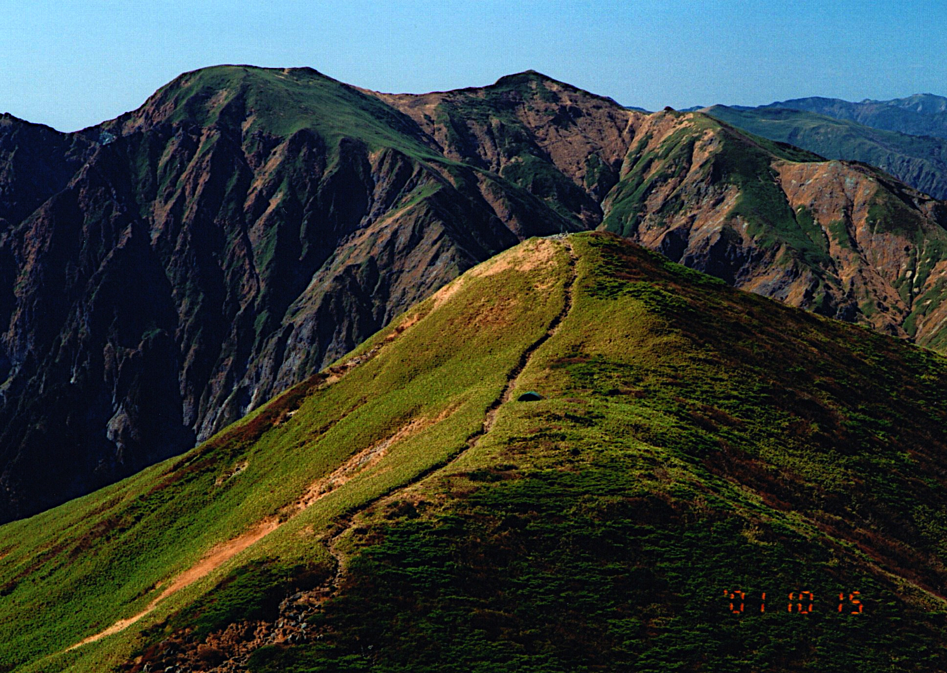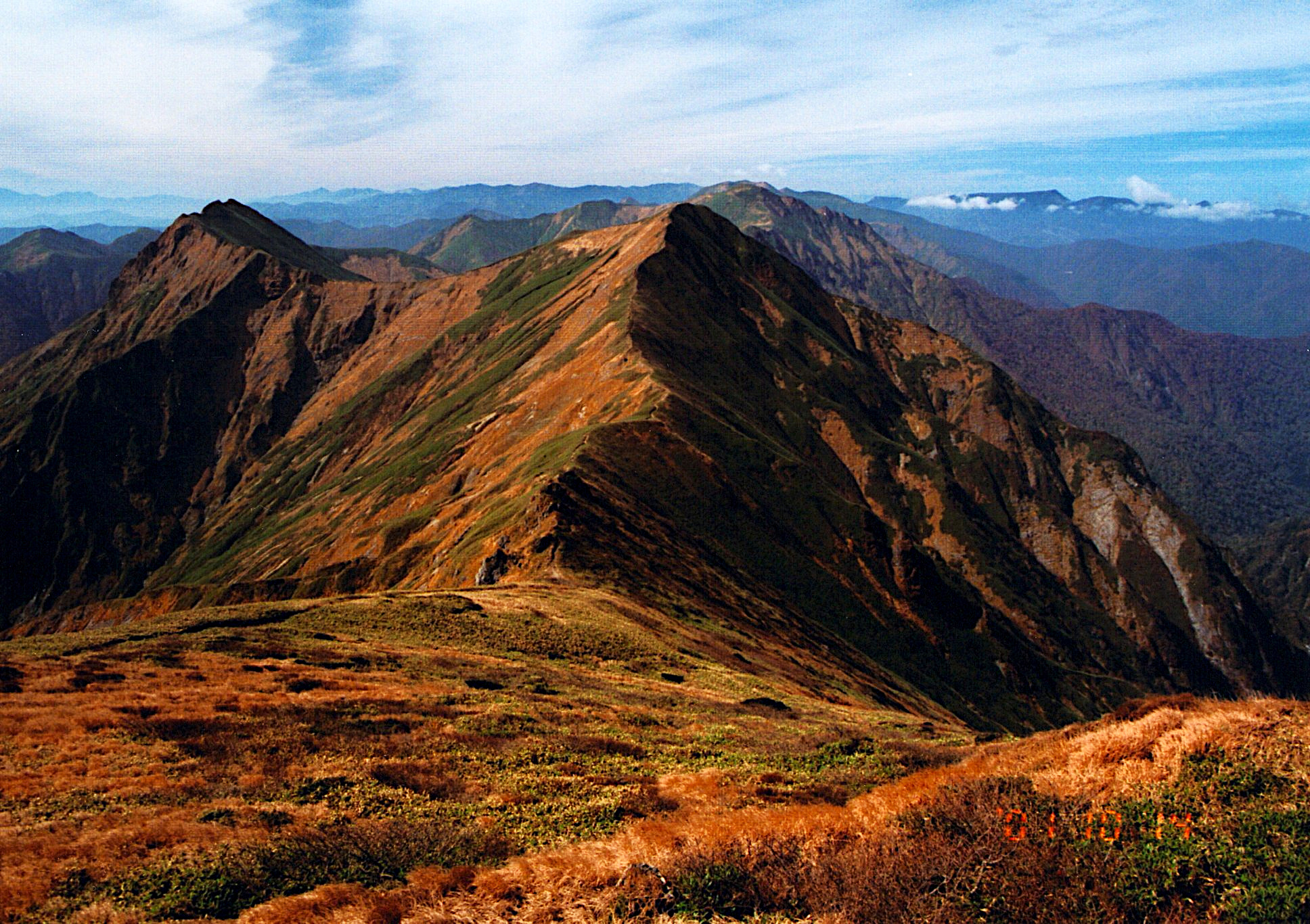 歩いて来た稜線。