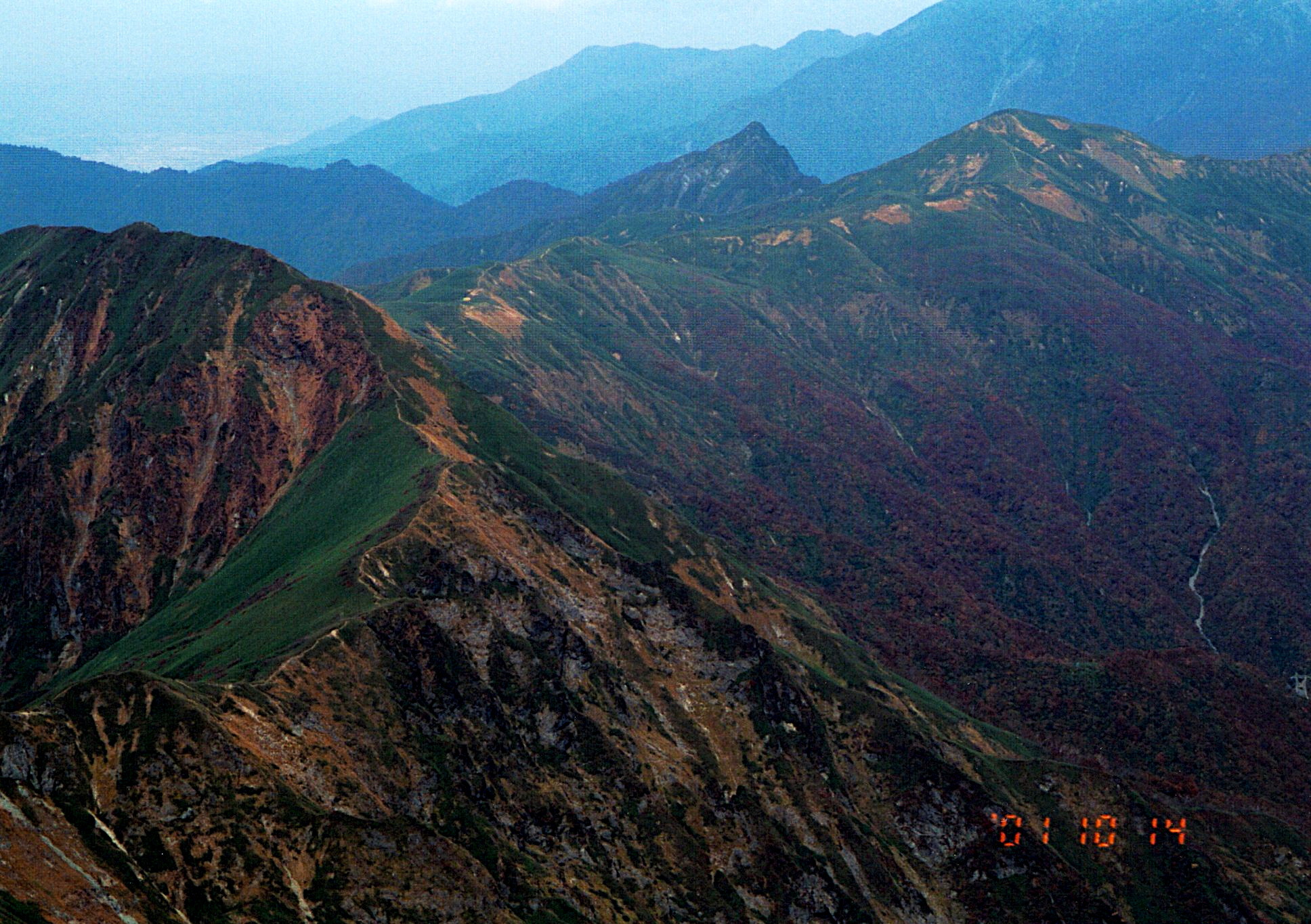 歩いて来た稜線も