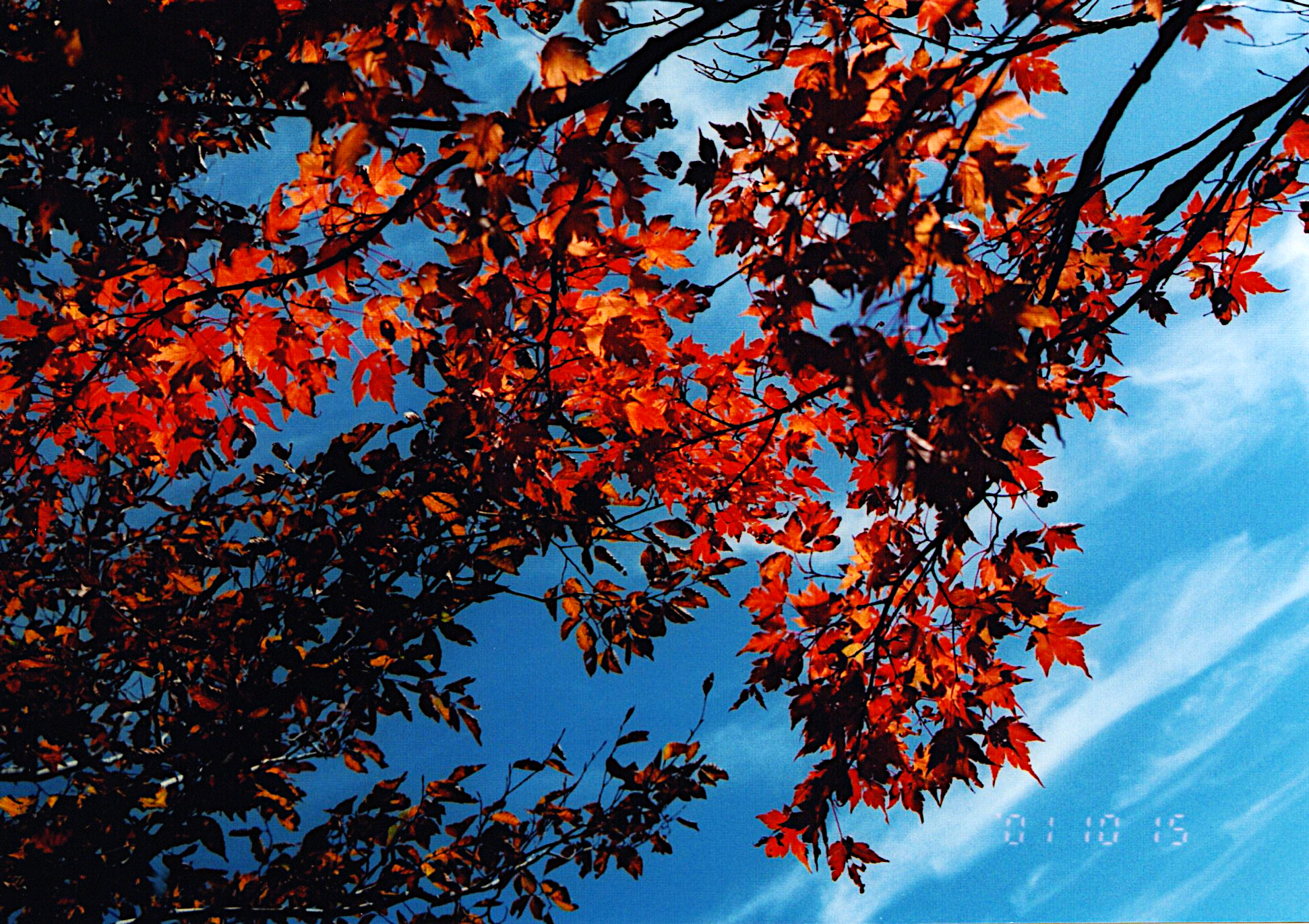 頭上に紅葉を