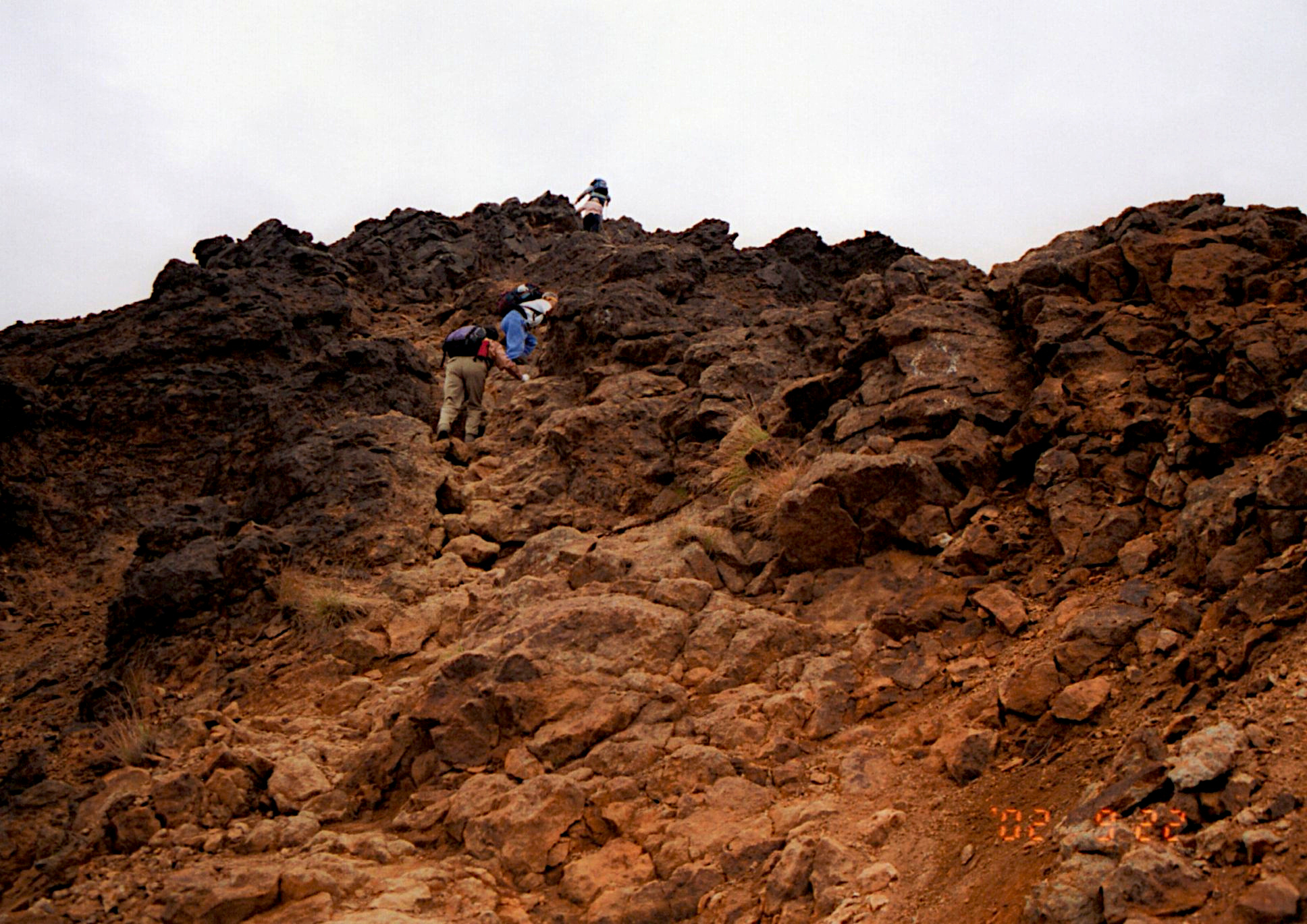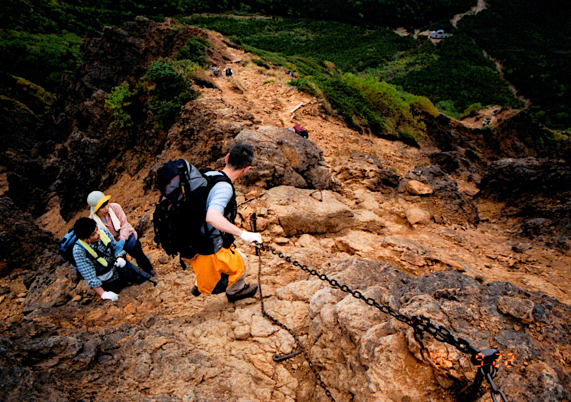 下から登って来る人と