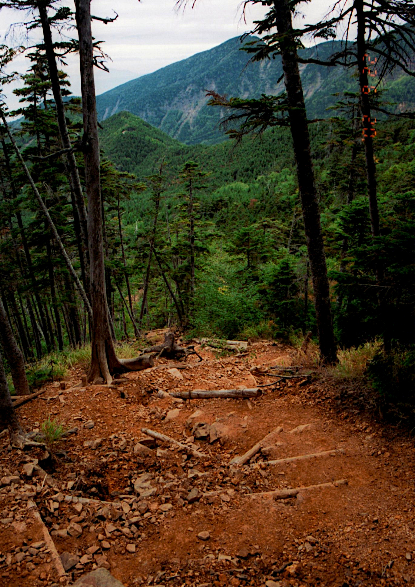 赤岳鉱泉を出ると、樹林帯の中を