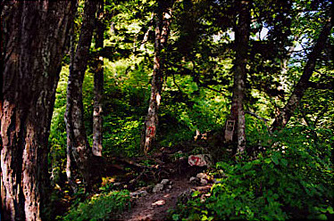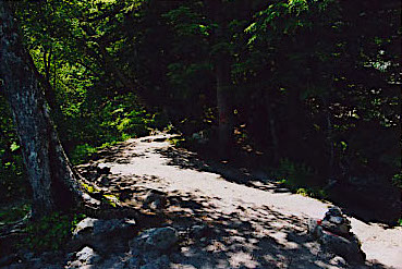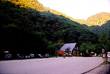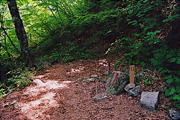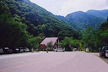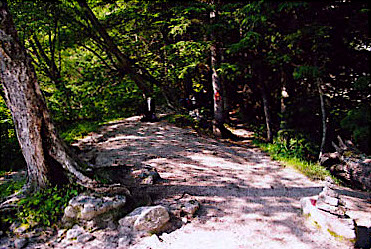 登山口の前では