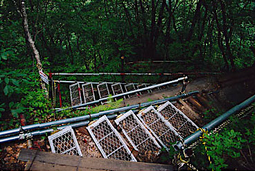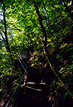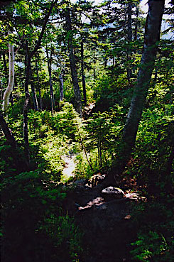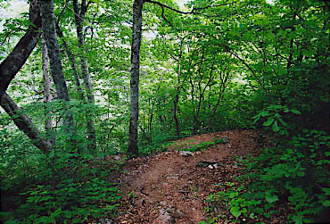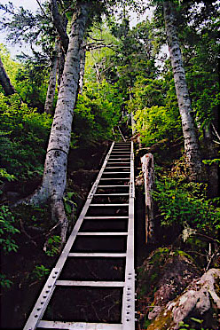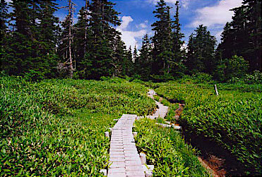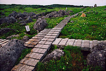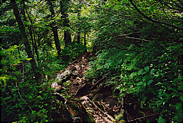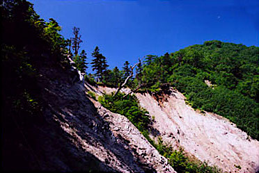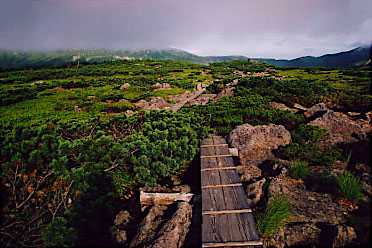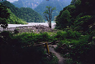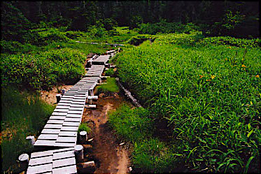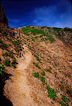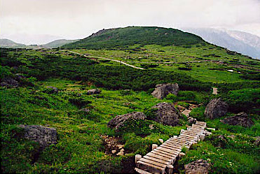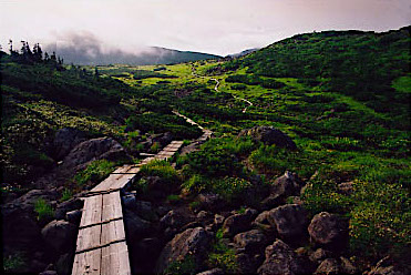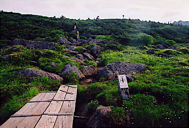 吊り橋を渡り、仮設登山道を通って