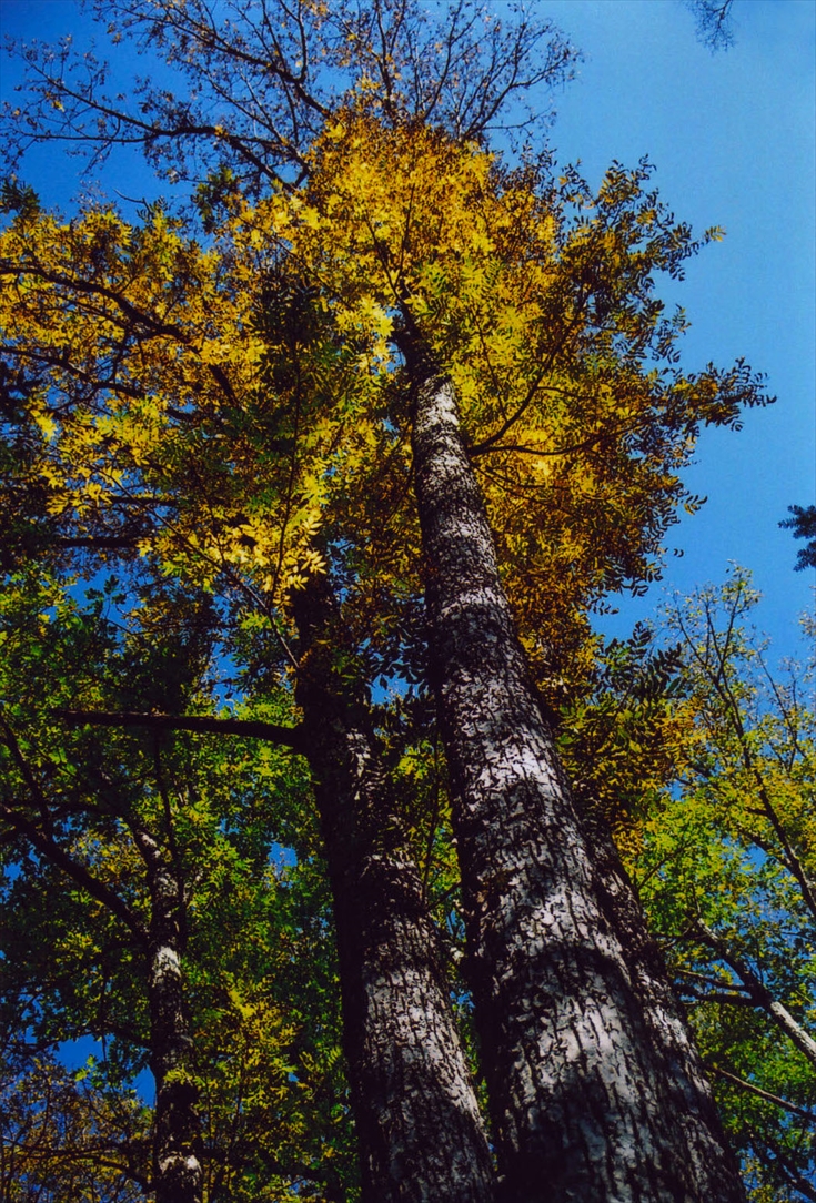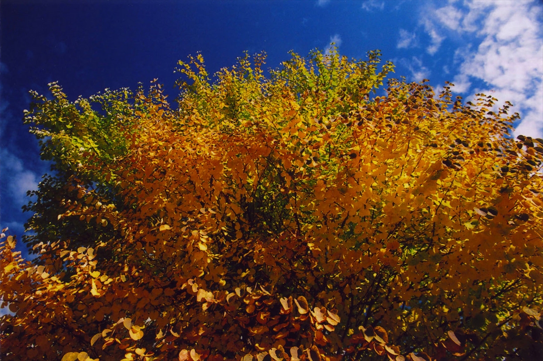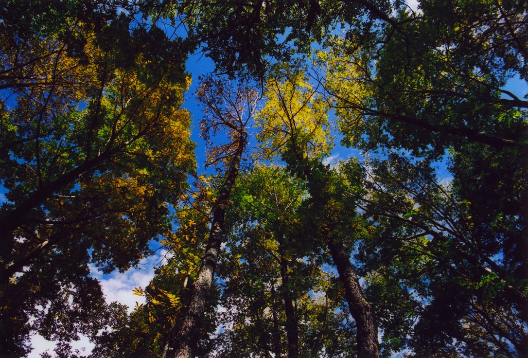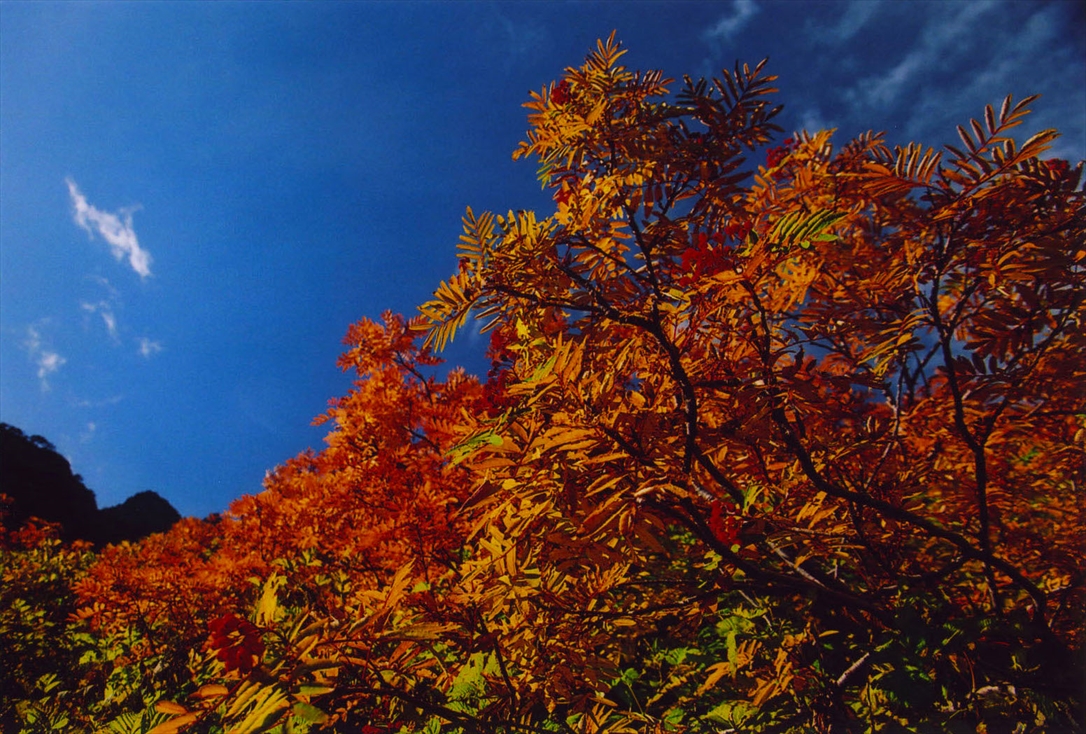 一部黄色や赤に染まっている葉もある。