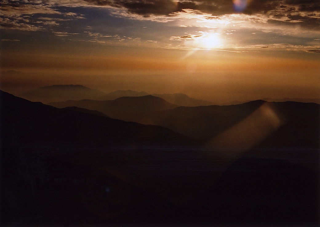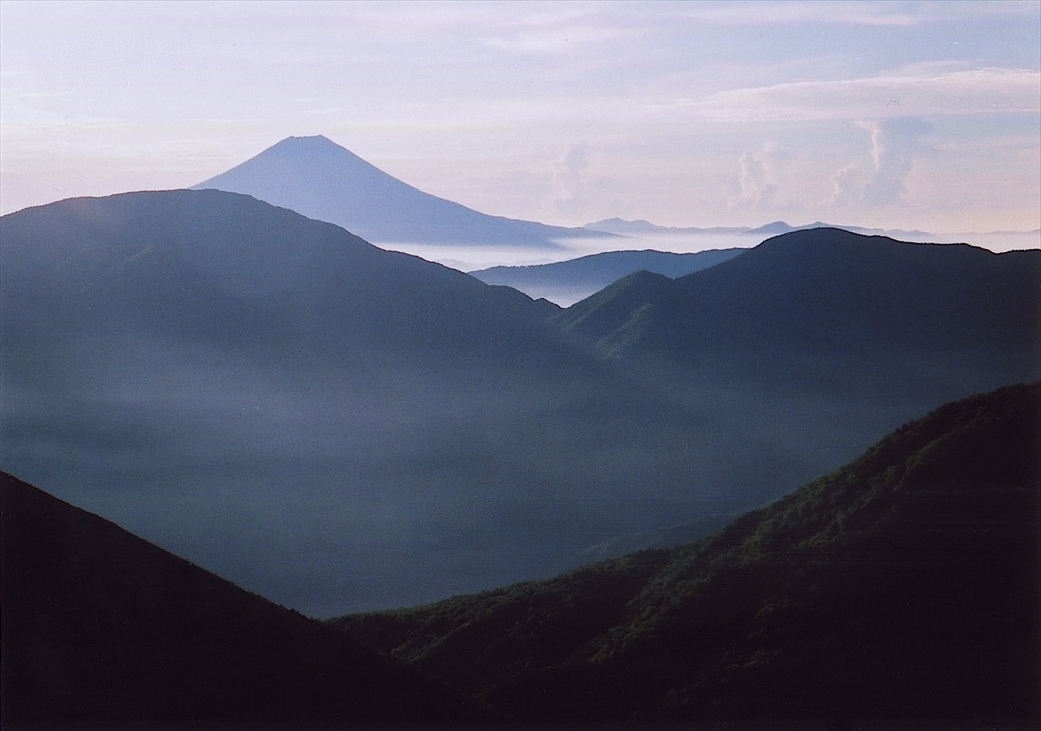 東寄りの山の稜線上には、まだ朝なのに