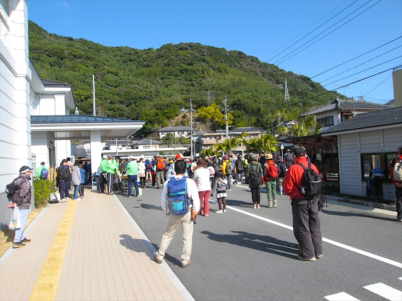 歩きが始まると、大勢がゾロゾロと道路を歩き出す。
