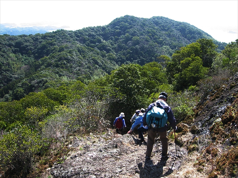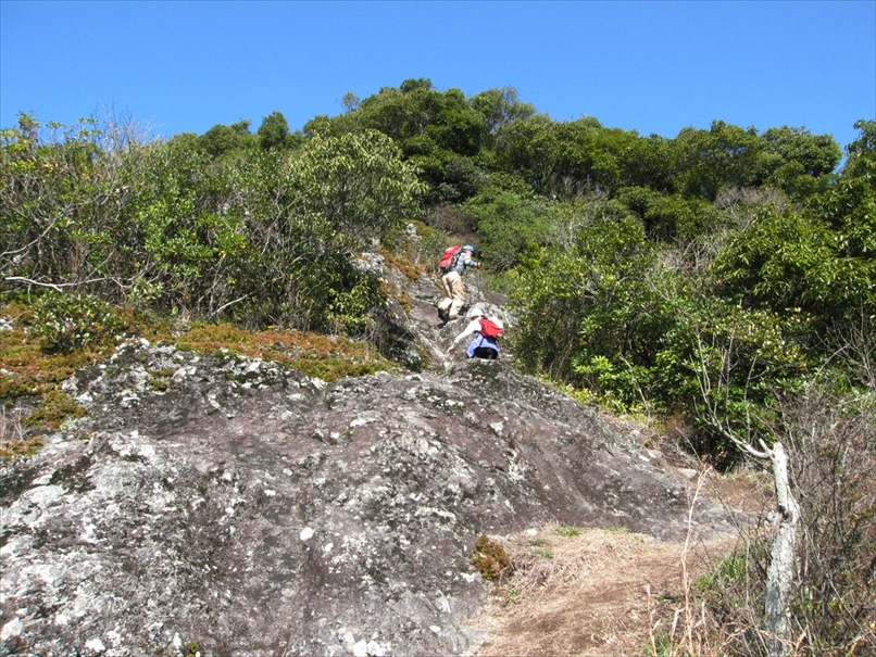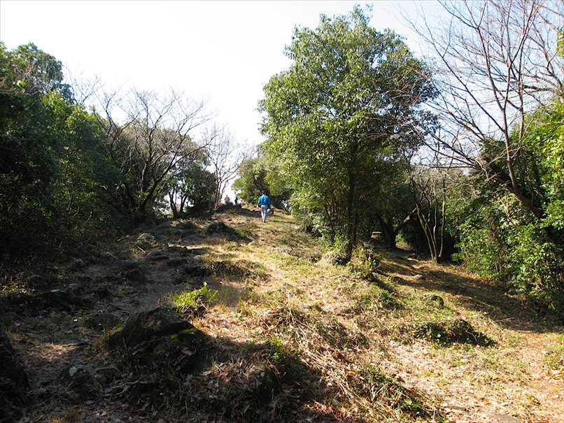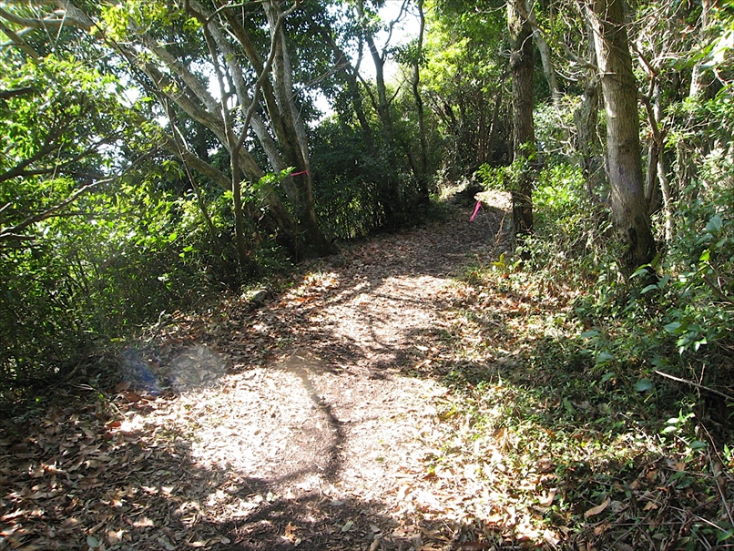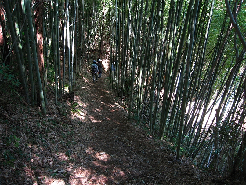 しばらく道路を歩いて山道に入ると、狭い登山道に