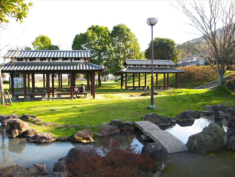 ベンチには何と瓦屋根! ゴージャスじゃないか〜