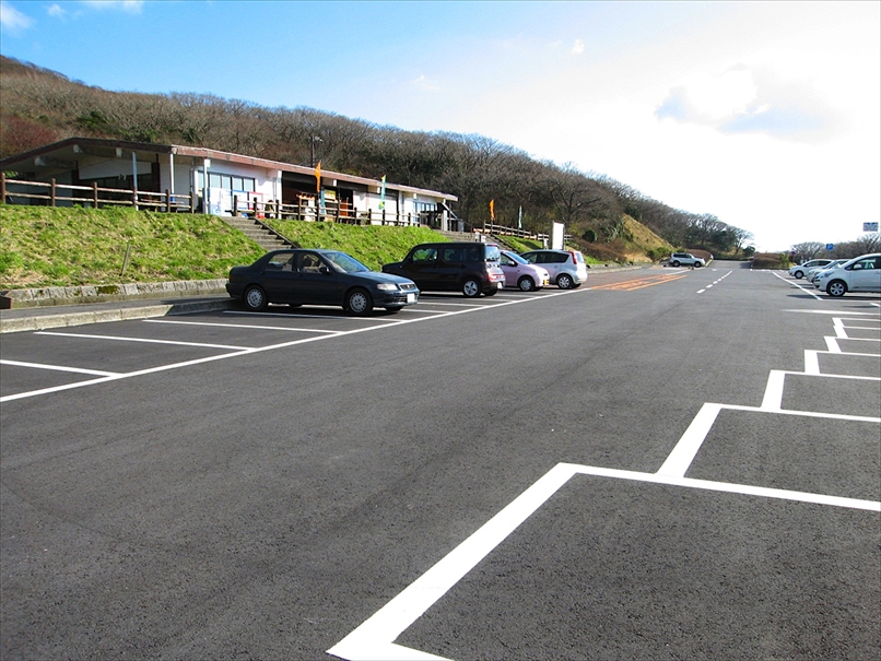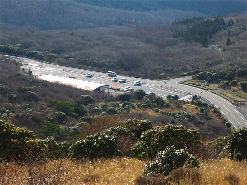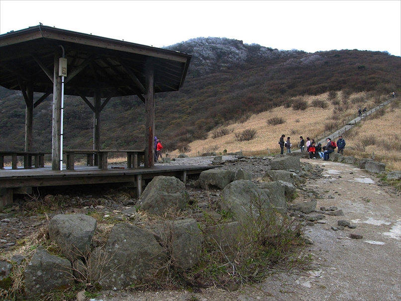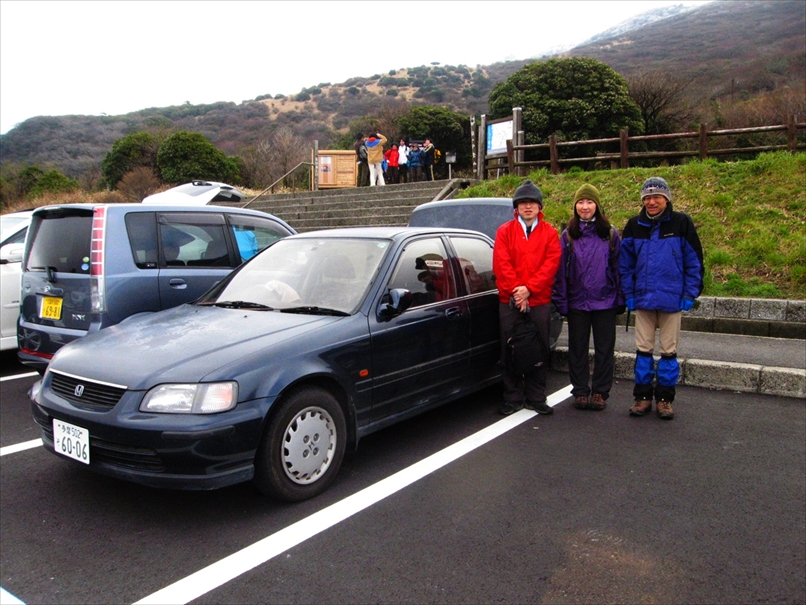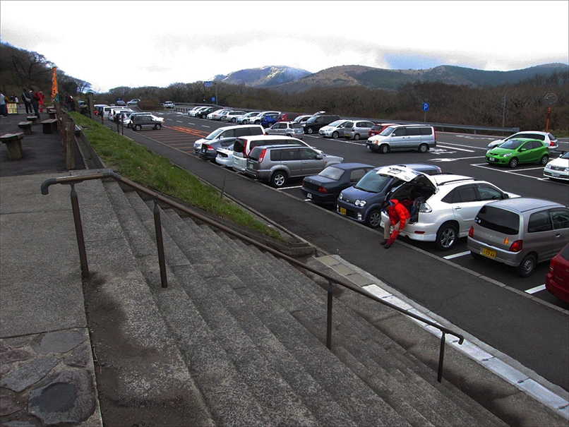 牧ノ戸峠の駐車場に着くと車はガラガラ。