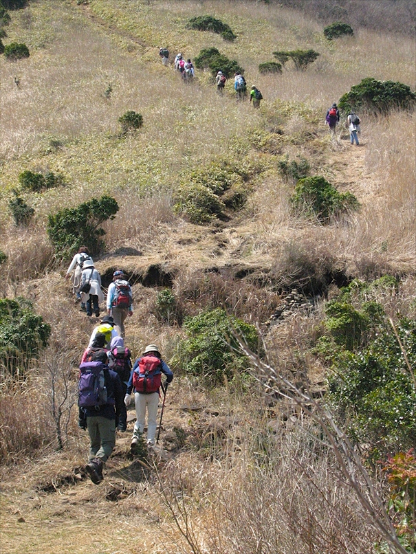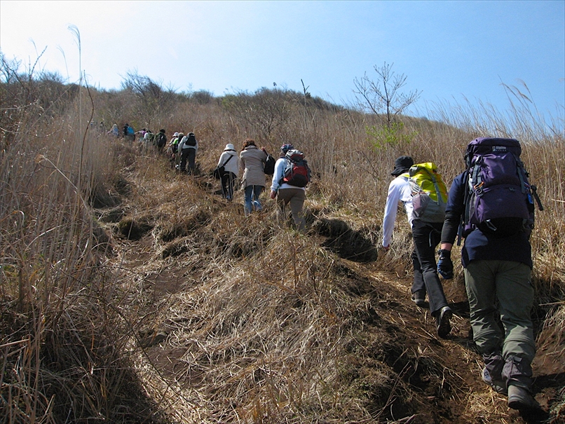 皆さん綺麗に一列歩行。 ここ道が狭いしね〜