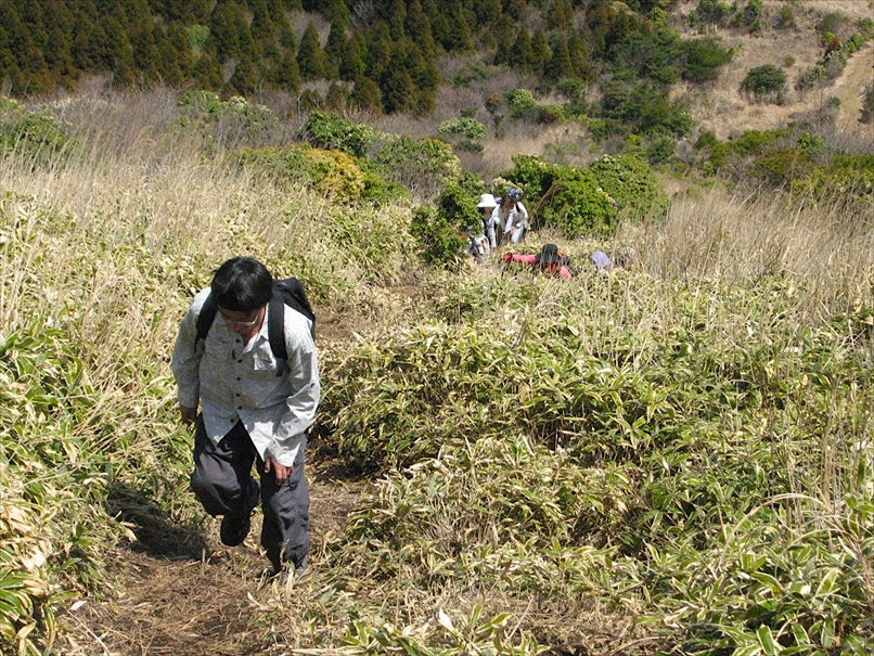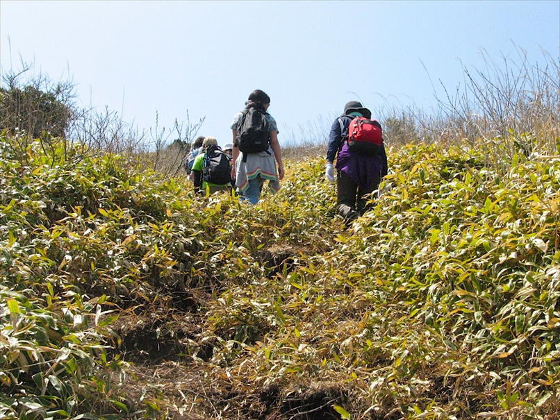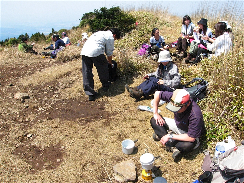 急斜面を登り切り、一段落して休憩中の先頭部隊。