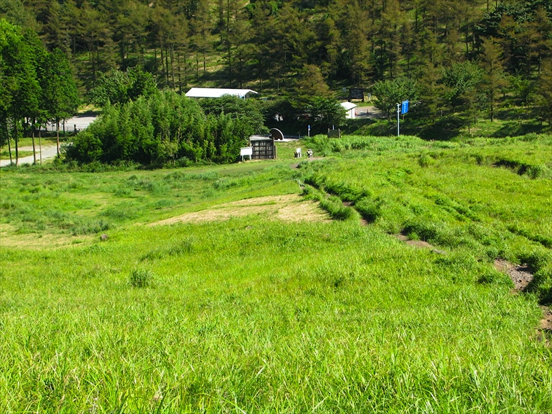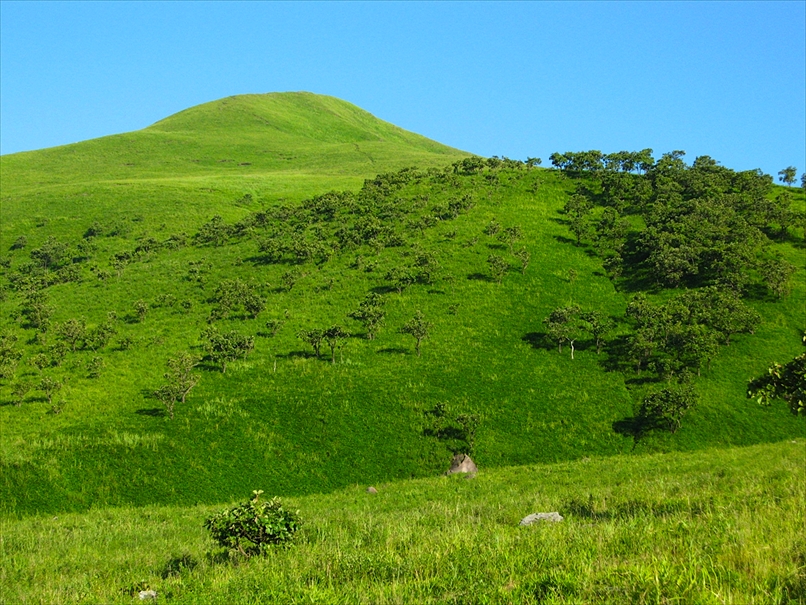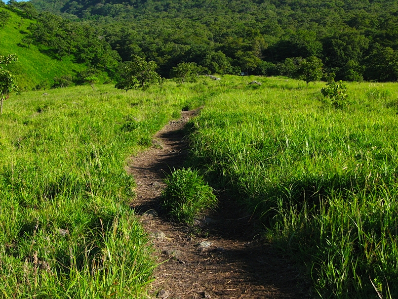 斜面下の樹林帯まで広々とした穏やかな草原歩き。