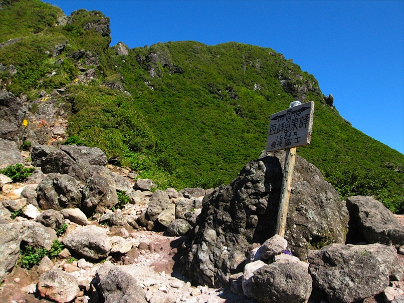 西峰側を改めて眺めてみると、やっぱりゴツゴツだ。