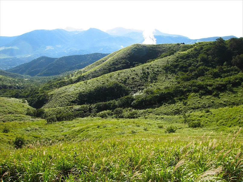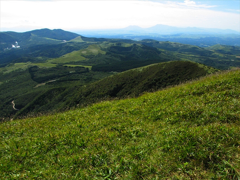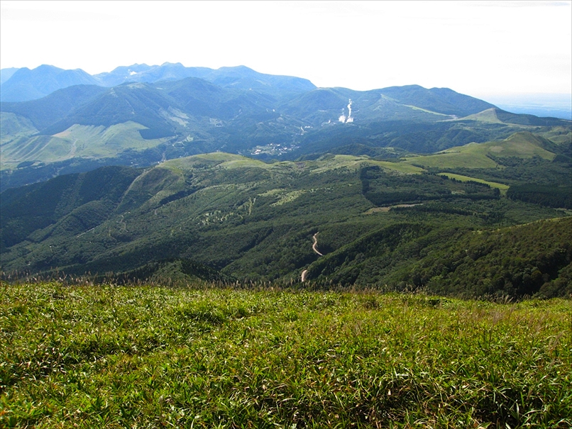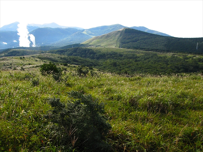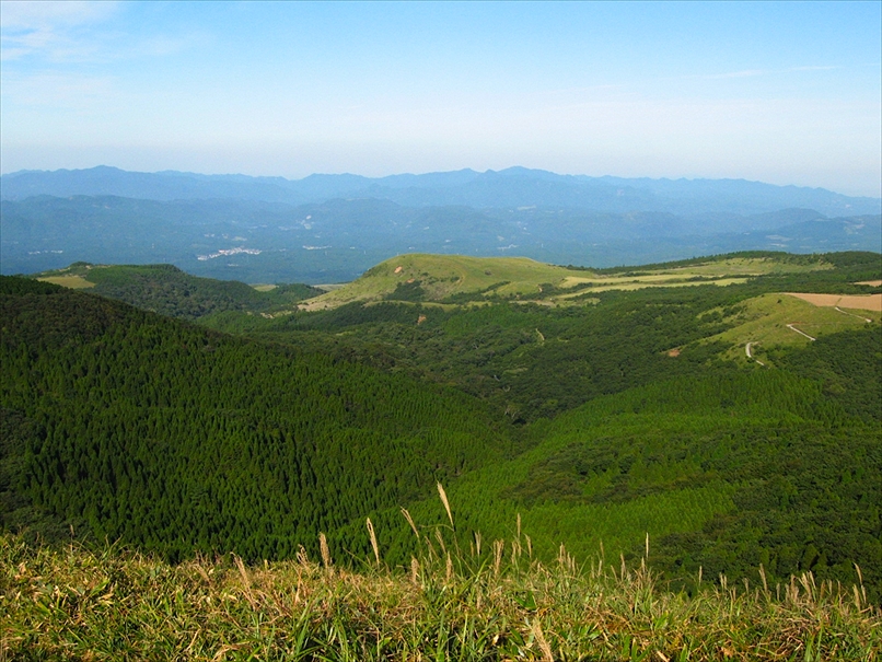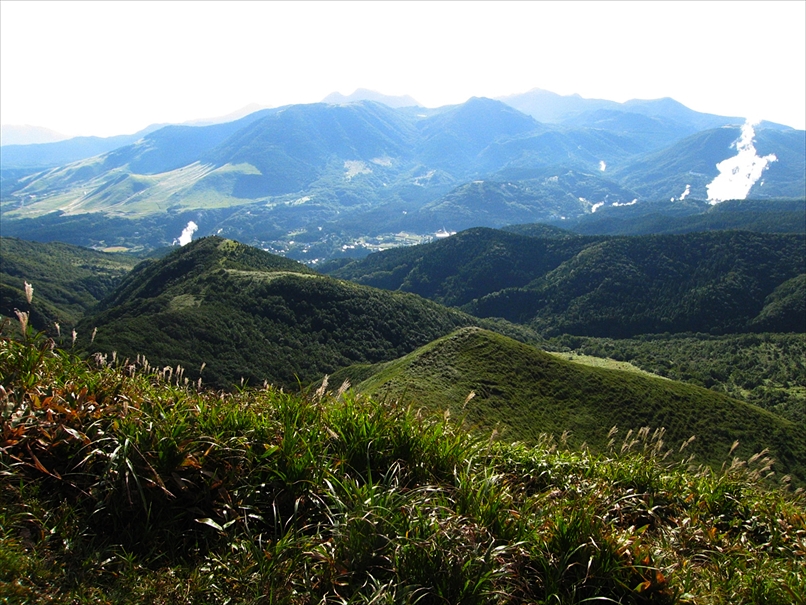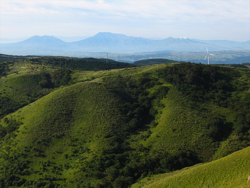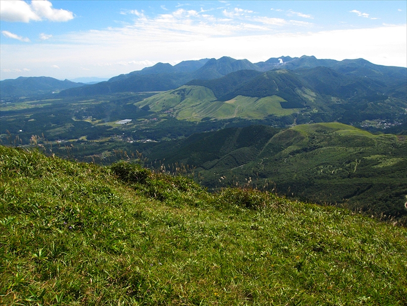 くじゅうの山並みの右奥には阿蘇の山並み。