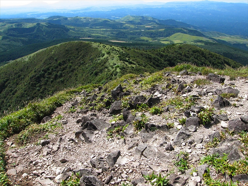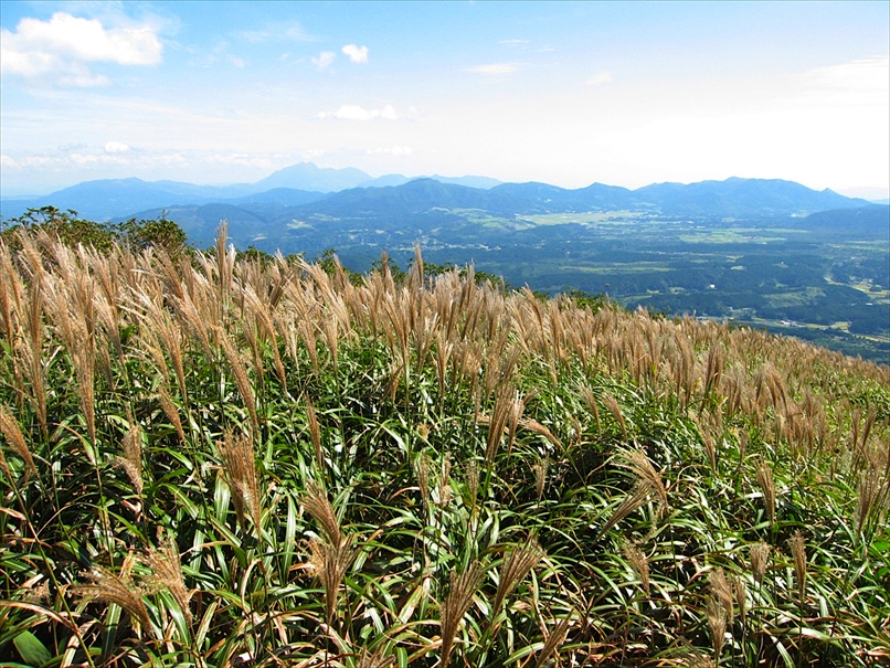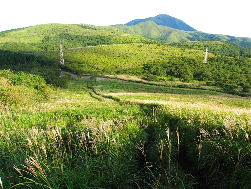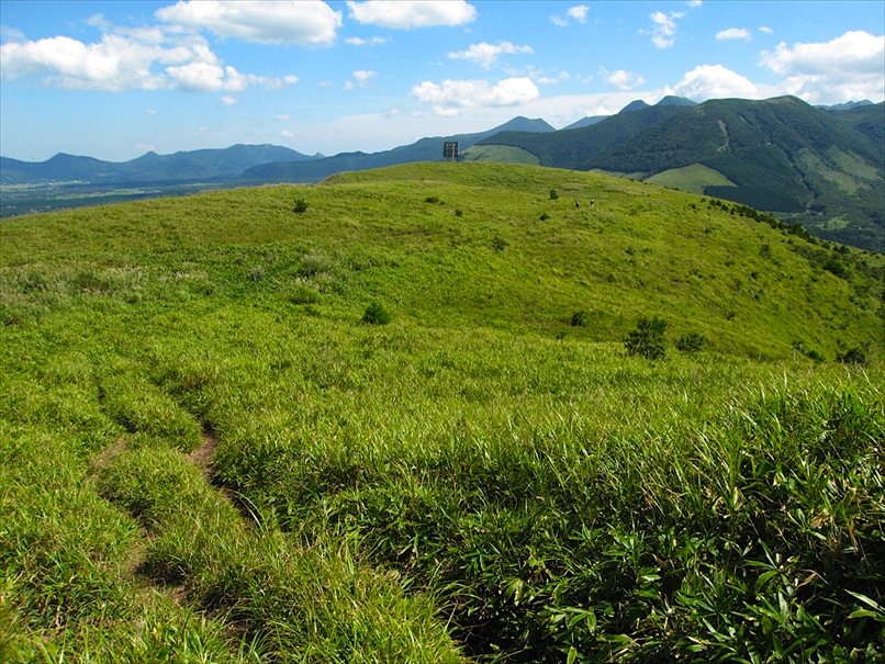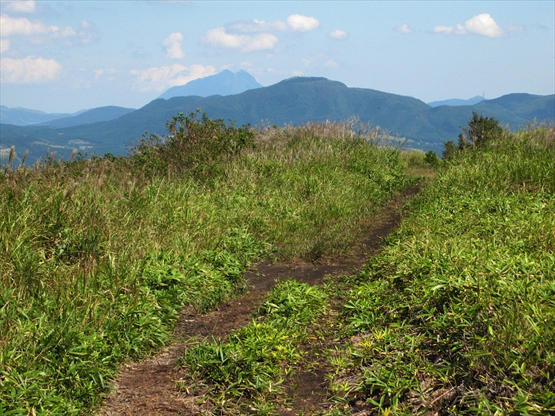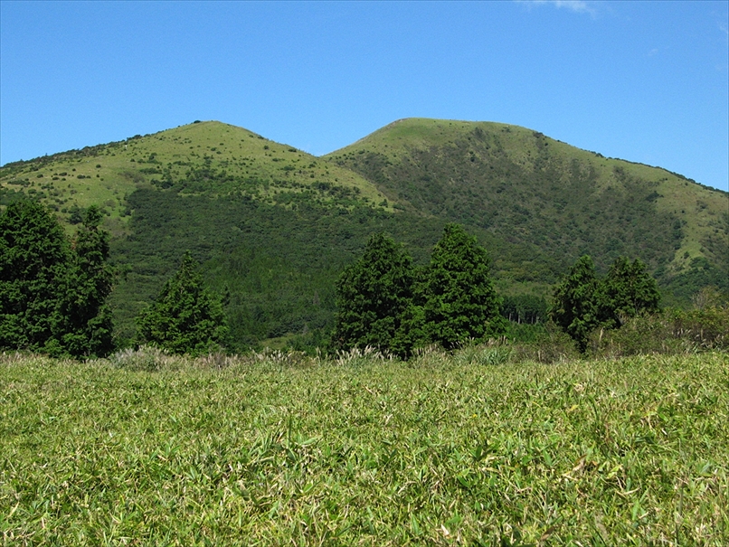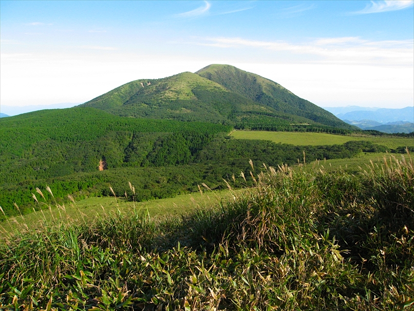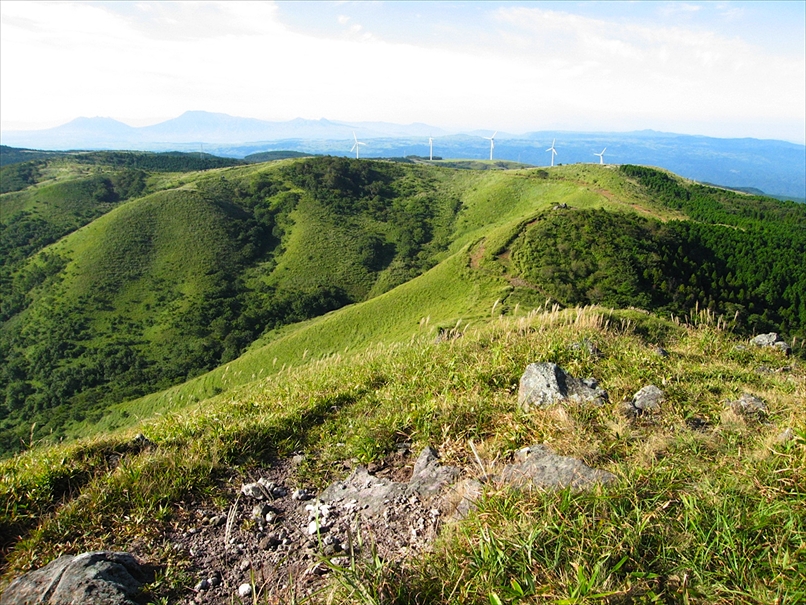 くじゅうの山並みの右奥には阿蘇の山並み。