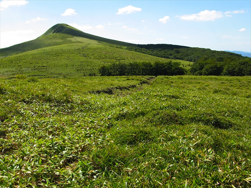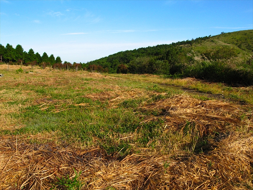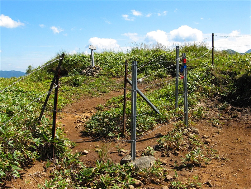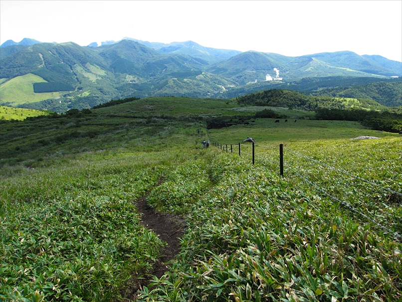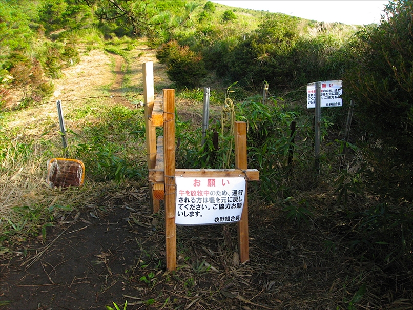 緩い丘を登り切ると放牧の牛止めの柵があり、