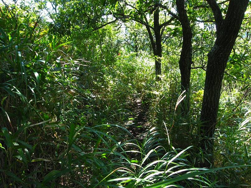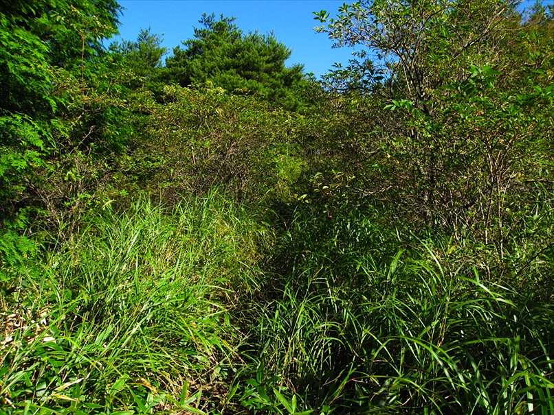 斜面を降る頃から藪漕ぎっぽい状態に突入。