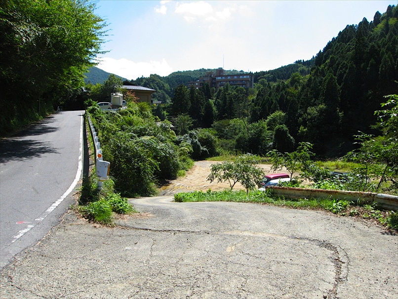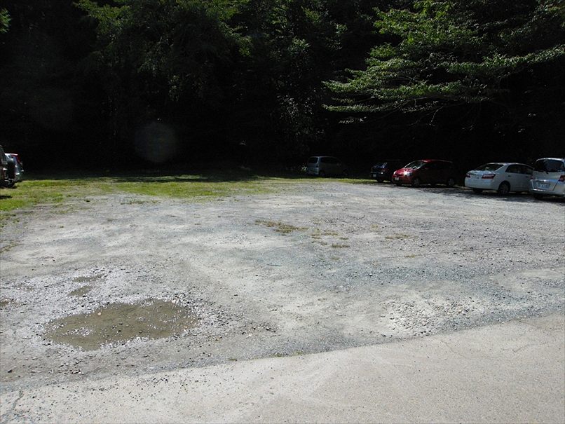そして堰堤が現れると、すぐ下が有料駐車場だった。
