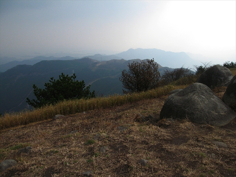 右側の山頂付近が四方台で、その奥の左側が貫山。