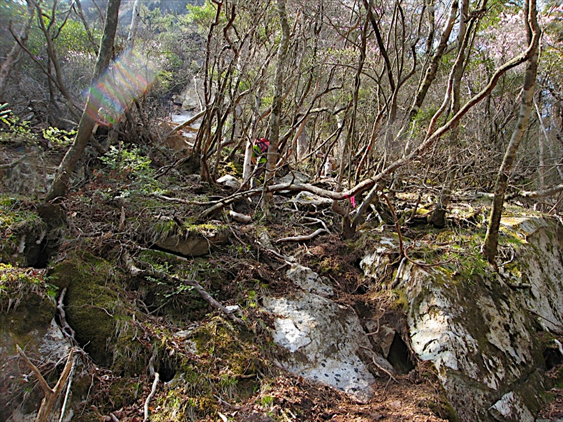 だいぶ降りて来て周囲が樹林帯になってきた所で、